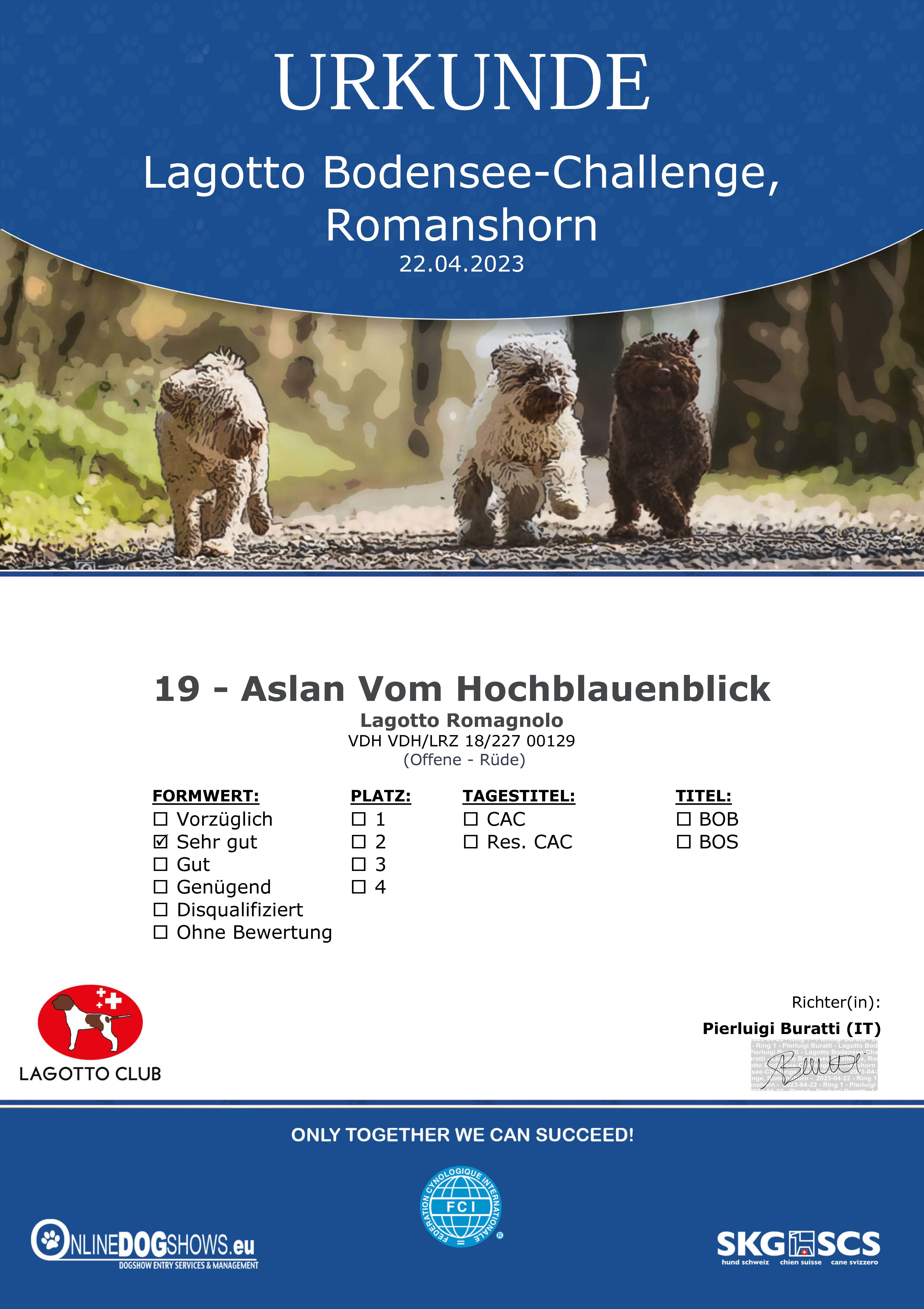 ![]() Lagotto Bodenseechallenge Romanshorn 22.04.2023 |