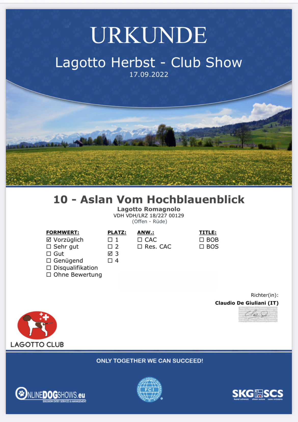 ![]() Lagotto Herbst-Club-Show Thörigen 17.09.2022 |